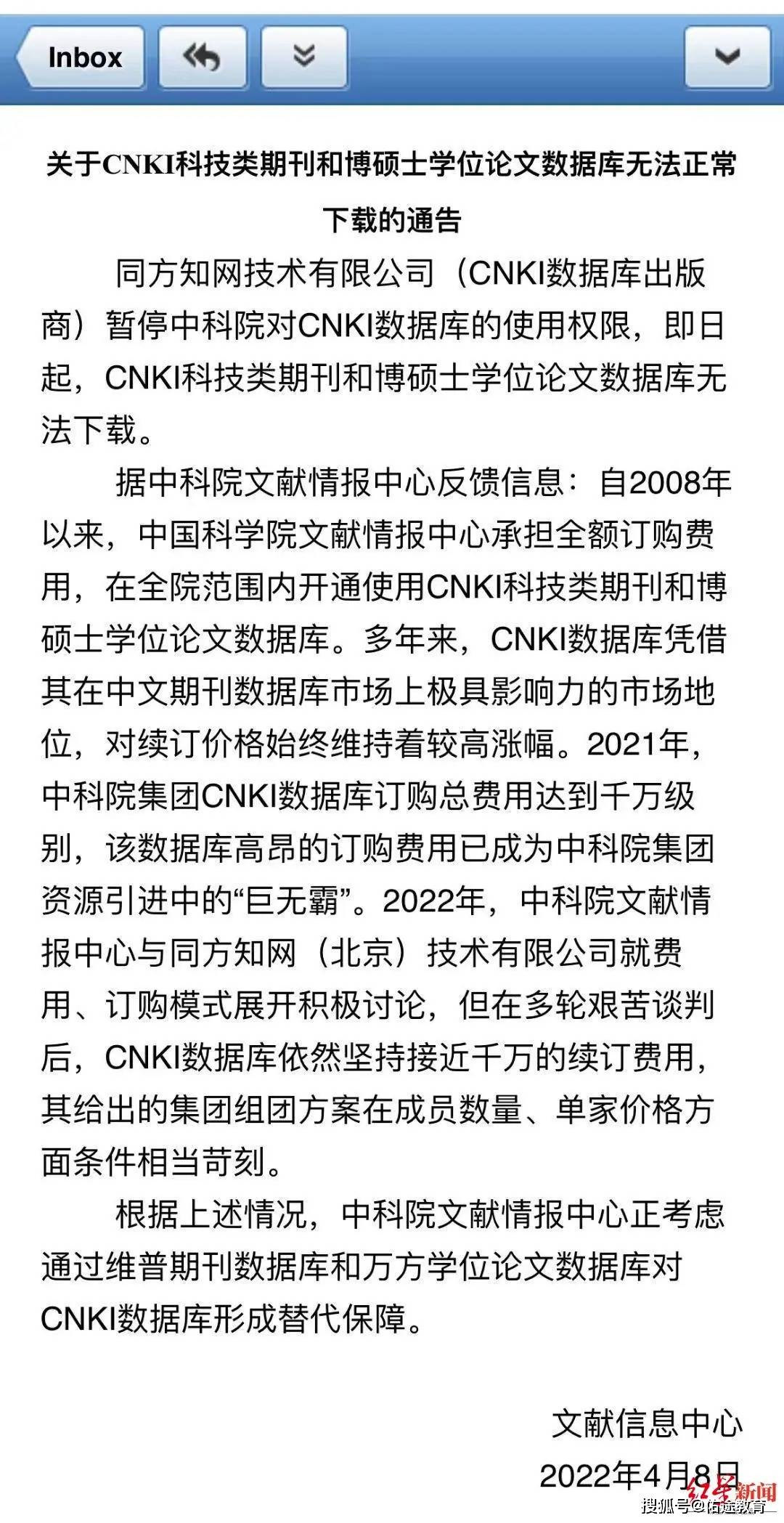 022年4月时刻回溯至2,用冲破万万元级别、且近年支柱较飞腾幅中科院文件谍报核心因知网年度订阅费,CNKI数据库坚决揭橥停用,维普等取代计划转而采用万方、。