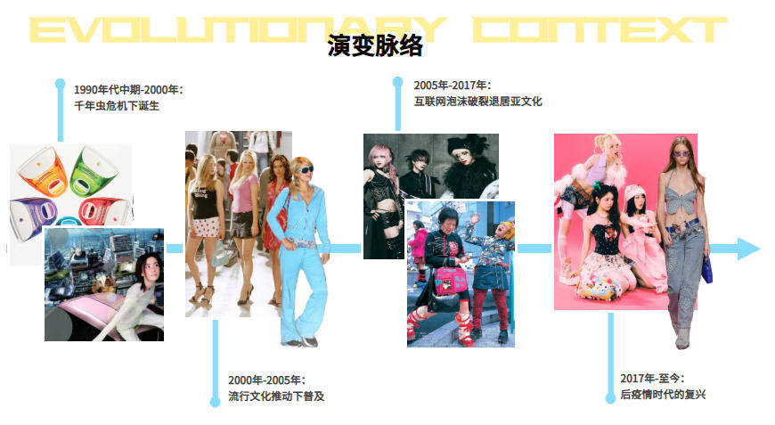 0 年互联网泡沫期2000-201,来普及阶段千禧美学迎。与互联网的普及跟着 PC ,ey SpearsMV 里的低腰牛仔裤成为象征性单品《理念城市》中 Carrie 的亮片吊带、Britn,力成为重心特质直白的性感与活。档案记录据行业,的女装出卖额冲破 80 亿美元2005 年环球带有千禧元素,比达 35%低腰裤品类占。